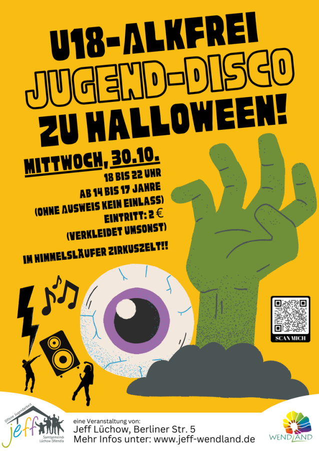 Bis April 2024 lief das von der Kreisjugendpflege organiserte Jugendforum in der Samtgemeinde (Lüchow). Neben vielen tollen Vorschlägen und absolut nachvollziehbaren Wünschen war Euch am wichtigsten ein schneller Internet-Zugang, dicht gefolgt von einer Jugend-Disco möglichst in der Nähe, möglichst Alkohol frei, am besten zu Halloween. Der Wunsch ist absolut nachvollziehbar: Es gibt kaum Discos in der Nähe und durch Corona haben viele von Euch noch nie eine Disco erlebt...
